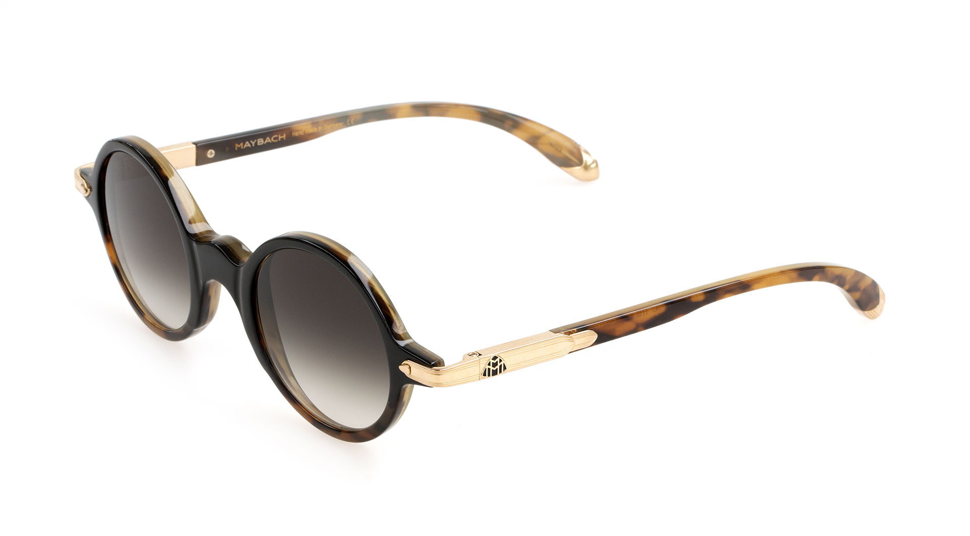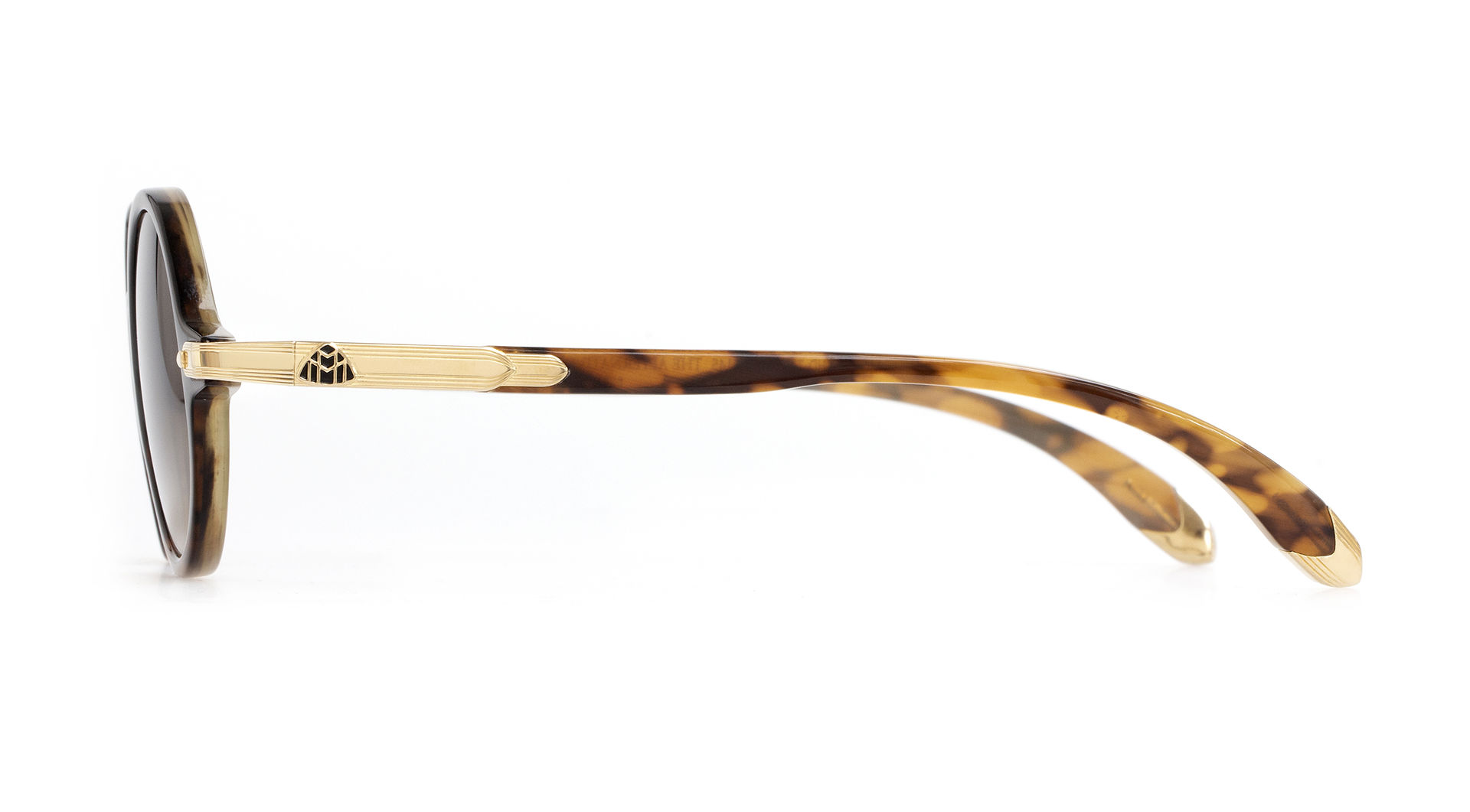 Late 1940s-inspired THE ALTERNATIVE II is in a league of its own. Delicious shades of natural horn show off the unique grain of this matchless material on the classic front and shapely temples. Precious-plated titanium end-pieces, decorated with “Flowing lines” embossing, wrap back to the temple and connect to an integrated spring-hinge mechanism with MAYBACH Double-M logo at the hinge cut. The linear design on the end pieces is inspired by detailing on the dashboard and door trim of the legendary MAYBACH automobiles.